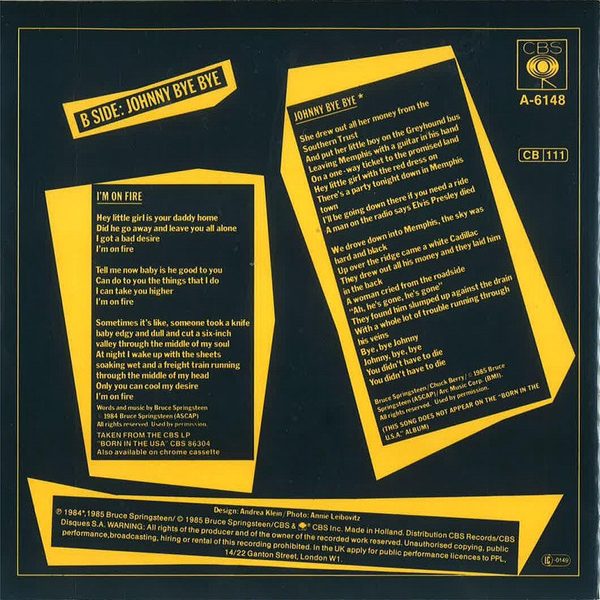 € 6.00 Media: Very Good Plus (VG+)Hoes: Very Good Plus (VG+)Bruce Springsteen – I’m On Fire (7″, Single)