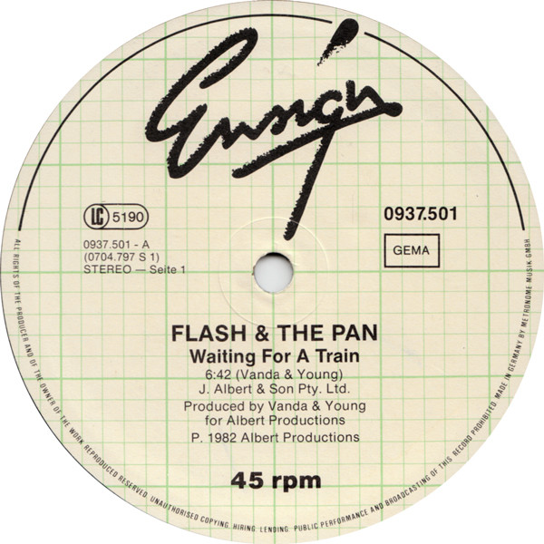 € 5.00 Media: Very Good (VG)Hoes: Very Good Plus (VG+)Flash And The Pan* – Waiting For A Train (Long Disco Version) (12″)