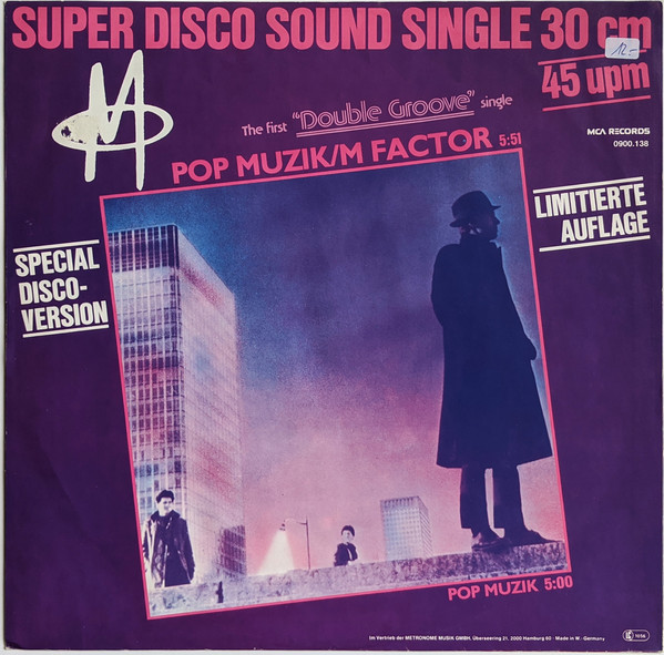 € 4.00 Media: Good Plus (G+)Hoes: Very Good (VG)M (2) – Pop Muzik / M Factor (Special Disco-Version) (12″, Maxi, Ltd)