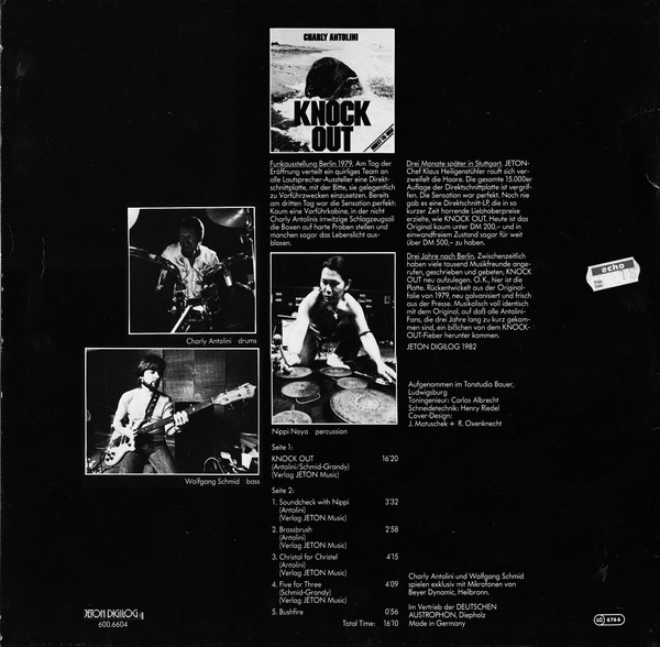 € 4.00 Media: Good Plus (G+)Hoes: Very Good (VG)Charly Antolini – Knock Out (LP, Album, RE, RP)