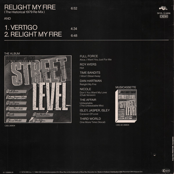 € 10.00 Media: Very Good Plus (VG+)Hoes: Very Good Plus (VG+)Dan Hartman – Relight My Fire (The Historical 1979 Re-Mix) (12″, Maxi, P/Mixed)