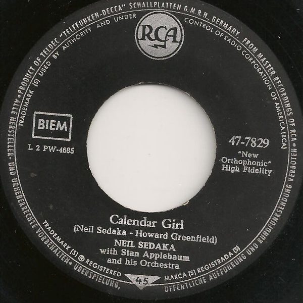 € 3.00 Media: Good Plus (G+)Neil Sedaka With Stan Applebaum And His Orchestra – Calendar Girl / The Same Old Fool (7″)