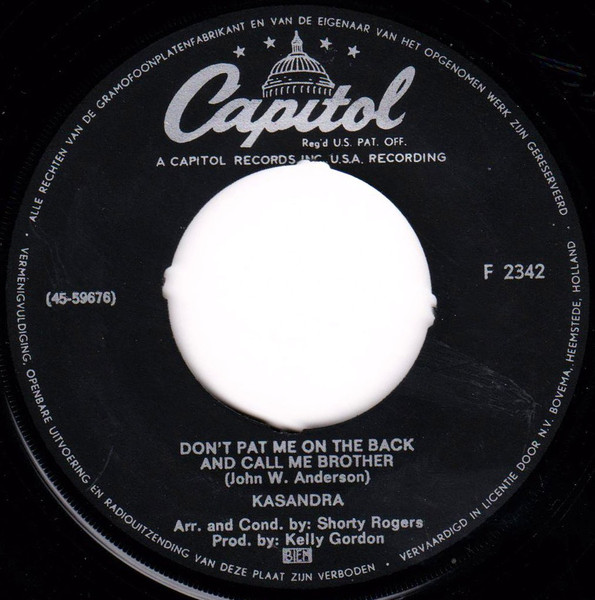 € 5.50 Media: Very Good (VG)John W. Anderson Presents John Kasandra – Don’t Pat Me On The Back And Call Me Brother (7″, Single)