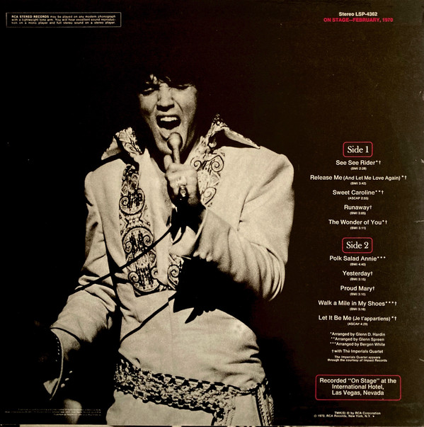 € 112.00 Media: Near Mint (NM or M-)Hoes: Near Mint (NM or M-)Elvis Presley – On Stage, February 1970 (LP, Album)