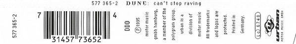 € 2.50 Media: Poor (P)Hoes: Very Good Plus (VG+)Dune (3) – Can’t Stop Raving (CD, Maxi)