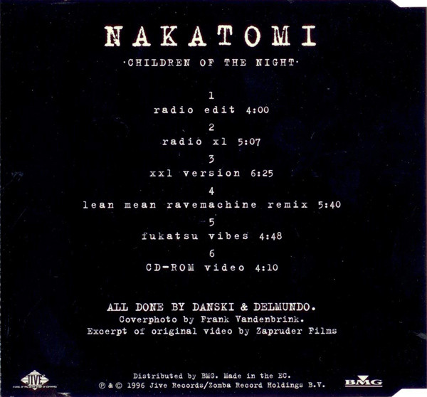 € 2.50 Media: Fair (F)Hoes: Good Plus (G+)Nakatomi – Children Of The Night (CD, Maxi, Enh)