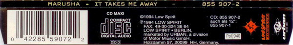 € 3.50 Media: Good Plus (G+)Hoes: Very Good (VG)Marusha – It Takes Me Away (CD, Maxi)