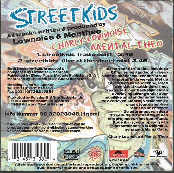 € 2.50 Media: Fair (F)Hoes: Very Good (VG)Charly Lownoise & Mental Theo – Streetkids (CD, Single)