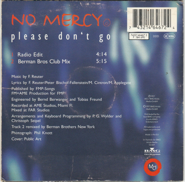 € 2.50 Media: Fair (F)Hoes: Very Good (VG)No Mercy – Please Don’t Go (CD, Single, Car)