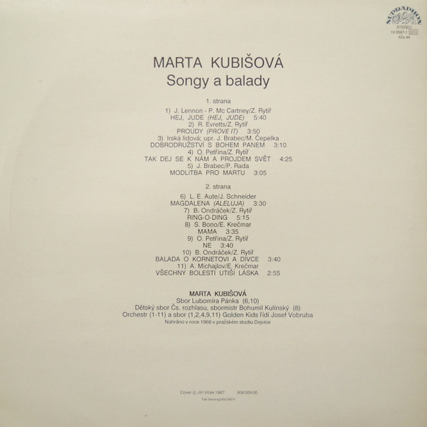 € 4.00 Media: Good Plus (G+)Hoes: Very Good (VG)Marta Kubišová – Songy A Balady (LP, Album, RE)