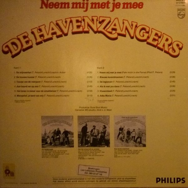 € 7.50 Media: Very Good Plus (VG+)Hoes: Near Mint (NM or M-)De Havenzangers – Neem Mij Met Je Mee (LP, Album)