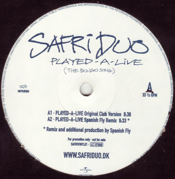 € 8.50 Media: Very Good (VG)Hoes: Near Mint (NM or M-)Safri Duo – Played-A-Live (The Bongo Song) (12″, Promo)