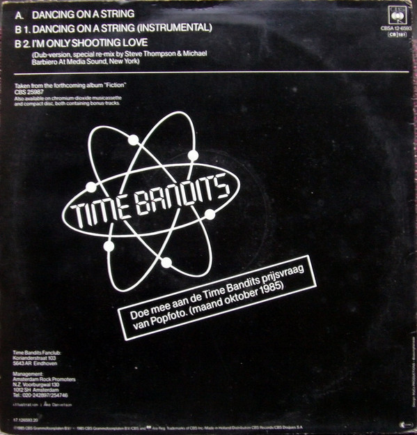 € 6.50 Media: Very Good Plus (VG+)Hoes: Very Good Plus (VG+)Time Bandits – Dancing On A String (12″, Maxi)