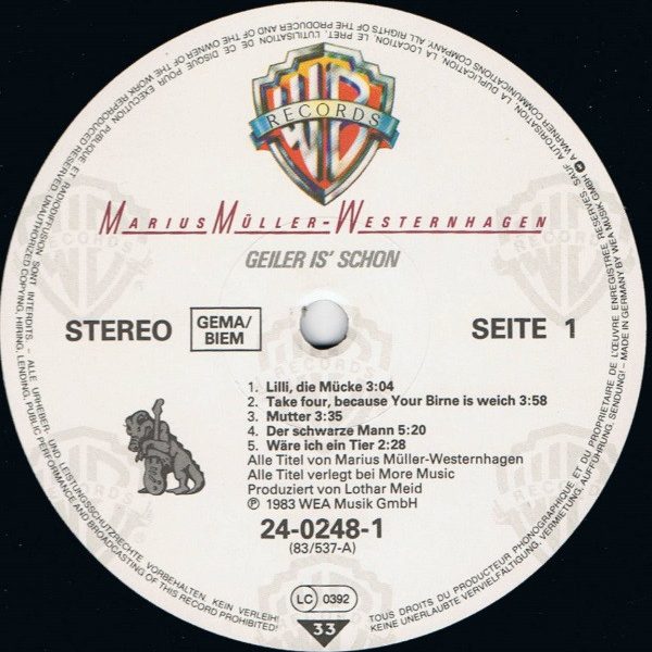 € 7.50 Media: Near Mint (NM or M-)Hoes: Very Good Plus (VG+)Marius Müller-Westernhagen – Geiler Is’ Schon (LP, Album)