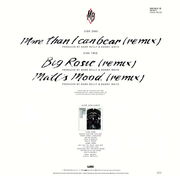 € 6.50 Media: Very Good Plus (VG+)Hoes: Very Good Plus (VG+)Matt Bianco – More Than I Can Bear (Remix) (12″)