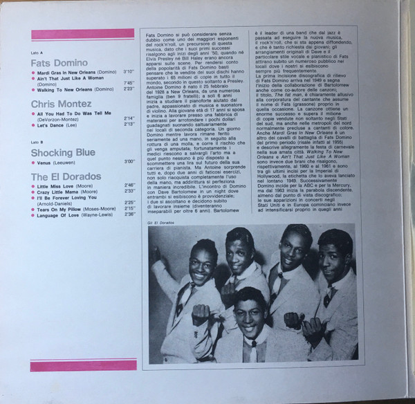 € 9.50 Media: Near Mint (NM or M-)Hoes: Very Good Plus (VG+)Fats Domino / Chris Montez / Shocking Blue / The El Dorados – Fats Domino / Chris Montez / Shocking Blue / The El Dorados (LP, Comp)