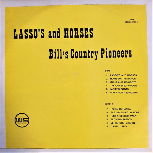 € 7.50 Media: Near Mint (NM or M-)Hoes: Very Good Plus (VG+)Bill’s Country Pioneers – Lasso’s And Horses (LP, Album)