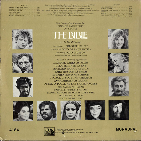 € 6.50 Media: Very Good Plus (VG+)Hoes: Very Good Plus (VG+)Toshiro Mayuzumi – The Bible … In The Beginning (Original Motion Picture Soundtrack Album) (LP, Mono, Gat)