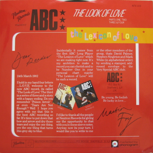 € 5.00 Media: Very Good (VG)Hoes: Very Good Plus (VG+)ABC – The Look Of Love (Parts One, Two, Three & Four) (12″, Single)