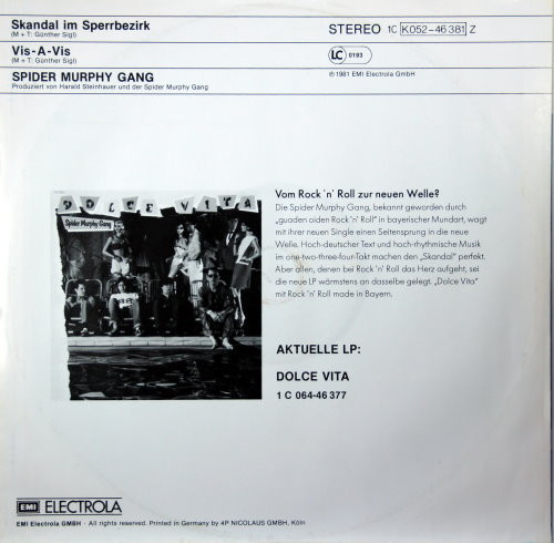 € 5.00 Media: Very Good (VG)Hoes: Very Good Plus (VG+)Spider Murphy Gang – Skandal Im Sperrbezirk (12″, Maxi)