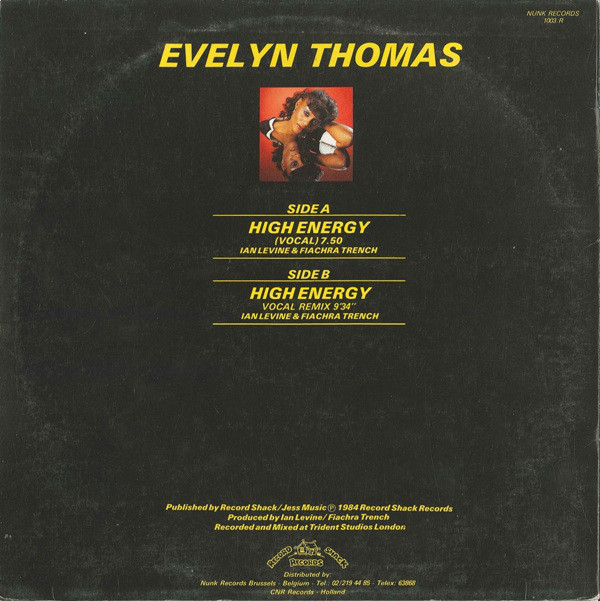 € 6.50 Media: Very Good Plus (VG+)Hoes: Good Plus (G+)Evelyn Thomas – High-Energy (Special Remix) (12″)