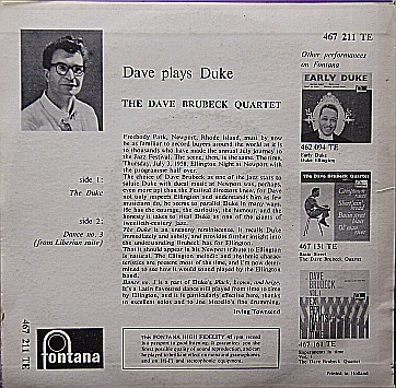 € 4.00 Media: Very Good Plus (VG+)Hoes: Very Good Plus (VG+)The Dave Brubeck Quartet – Dave Plays Duke (7″, Single)