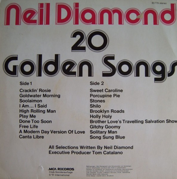 € 6.00 Media: Very Good (VG)Hoes: Very Good Plus (VG+)Neil Diamond – 20 Golden Songs (LP, Comp, Club, RE, S/Edition)
