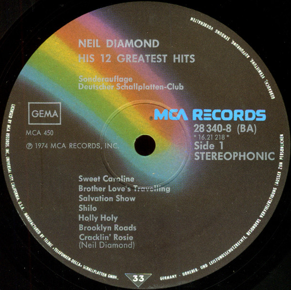 Neil Diamond – His Greatest Hits (LP, Comp, Club)
