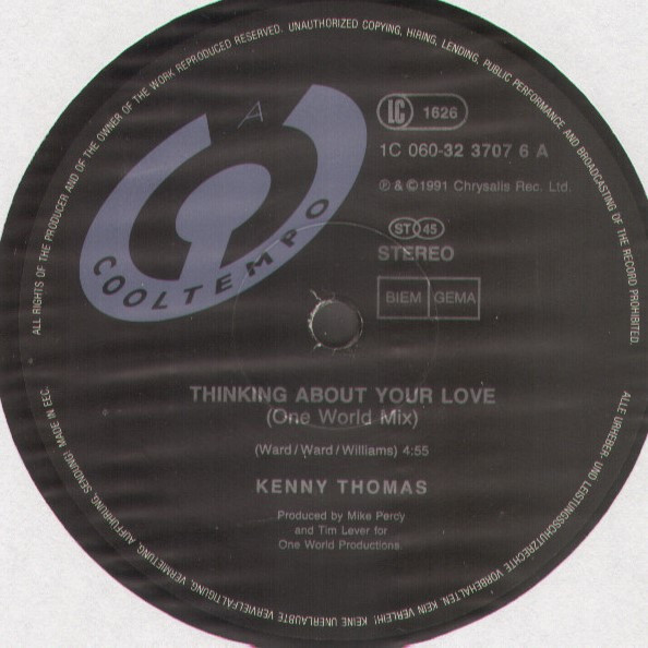 € 4.50 Media: Good Plus (G+)Hoes: Very Good (VG)Kenny Thomas – Thinking About Your Love (12″, Maxi)