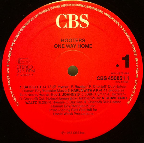 € 6.50 Media: Very Good (VG)Hoes: Very Good Plus (VG+)The Hooters – One Way Home (LP, Album, RE)