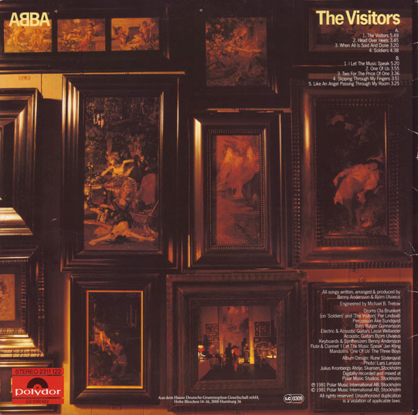 € 14.50 Media: Very Good Plus (VG+)Hoes: Very Good (VG)ABBA – The Visitors (LP, Album, Inj)