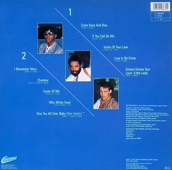 € 7.00 Media: Very Good (VG)Hoes: Very Good (VG)Bad Boys Blue – Love Is No Crime (LP, Album, Dif)