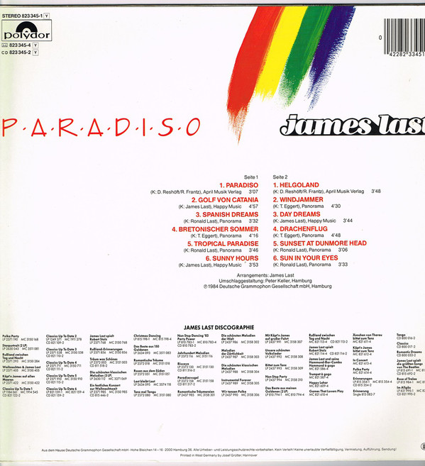 € 4.50 Media: Good Plus (G+)Hoes: Good Plus (G+)James Last – Paradiso (LP, Album)