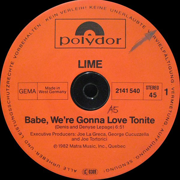€ 10.00 Media: Very Good (VG)Hoes: Very Good Plus (VG+)Lime (2) – Babe, We’re Gonna Love Tonite / Help Yourself (12″, Maxi)