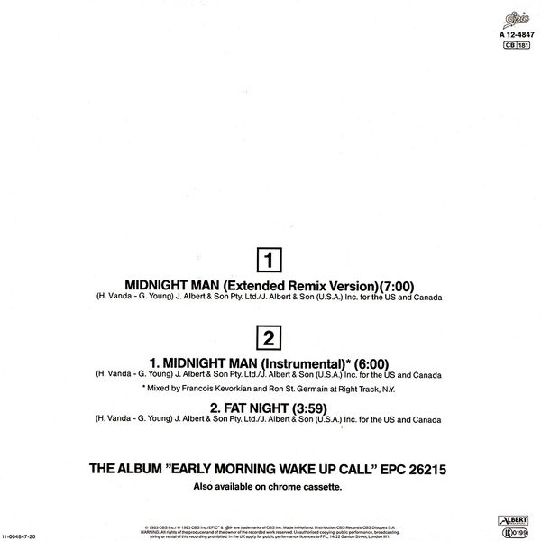 € 3.50 Media: Good (G)Hoes: Good Plus (G+)Flash And The Pan* – Midnight Man (Extended Remix Version) (12″, Maxi)