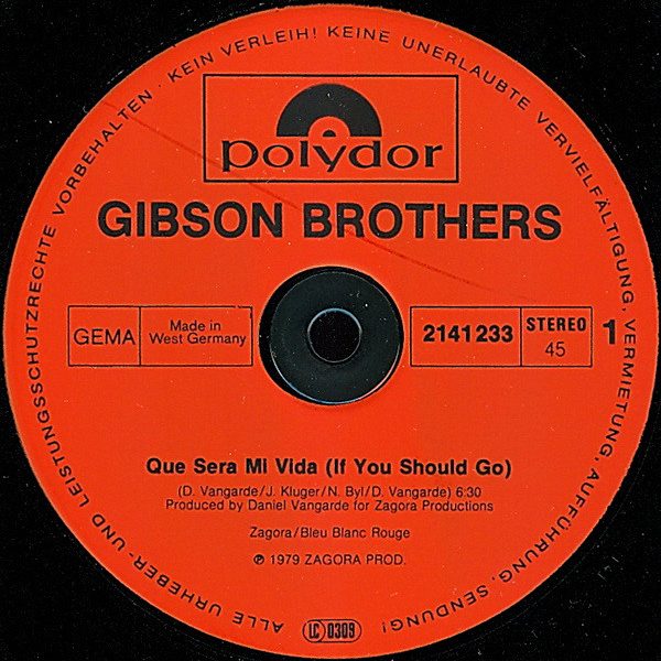 € 14.50 Media: Near Mint (NM or M-)Hoes: Near Mint (NM or M-)Gibson Brothers – Que Sera Mi Vida (If You Should Go) / In Love Again (12″, Maxi)
