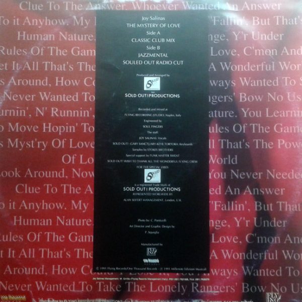 € 10.00 Media: Very Good (VG)Hoes: Very Good (VG)Joy Salinas – The Mystery Of Love (12″)
