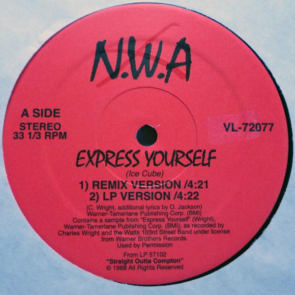 € 7.50 Media: Very Good (VG)N.W.A. – Express Yourself / Straight Outta Compton (12″, RE, Unofficial)