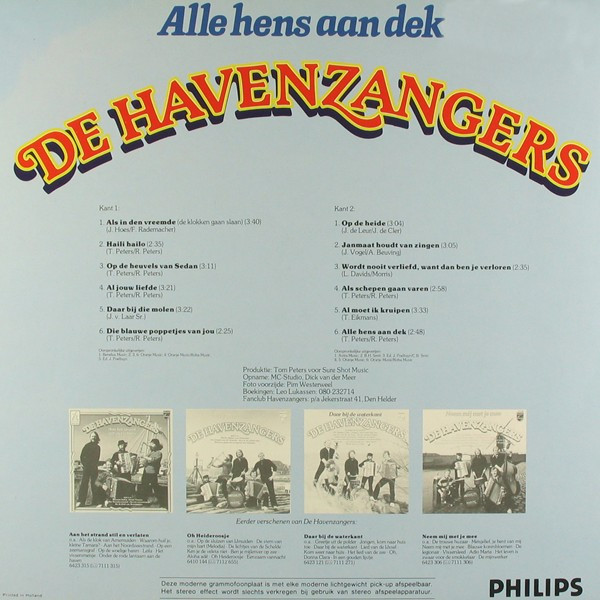 € 5.00 Media: Very Good (VG)Hoes: Very Good Plus (VG+)De Havenzangers – Alle Hens Aan Dek (LP, Album)