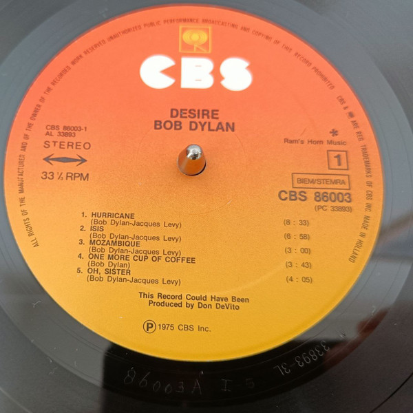 € 19.50 Media: Near Mint (NM or M-)Hoes: Very Good Plus (VG+)Bob Dylan – Desire (LP, Album)