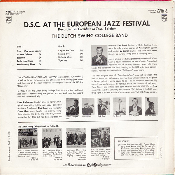€ 4.00 Media: Good Plus (G+)Hoes: Very Good (VG)The Dutch Swing College Band – D.S.C. At The European Jazz Festival (LP, Album, Mono)