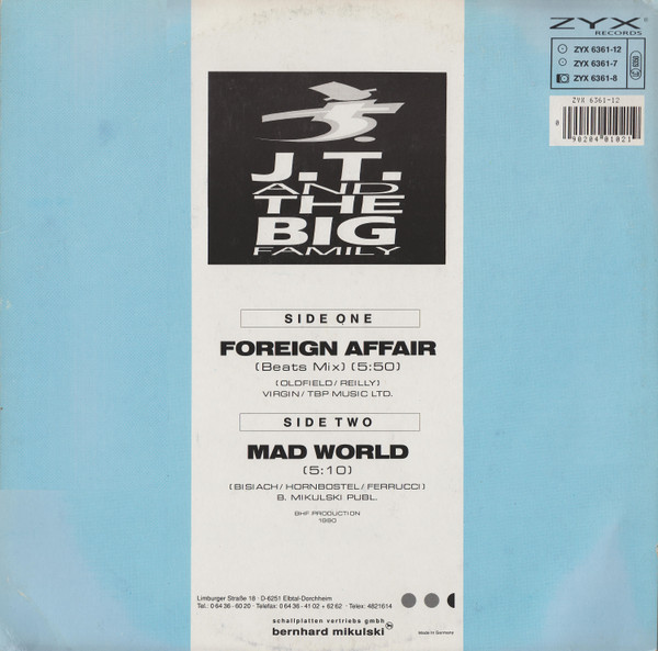 € 5.00 Media: Good Plus (G+)Hoes: Very Good Plus (VG+)J.T. And The Big Family – Foreign Affair (12″)