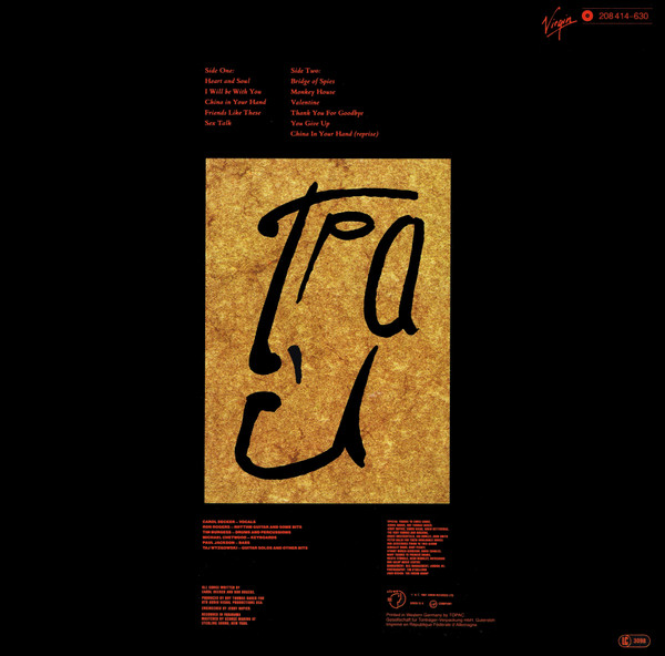 € 13.00 Media: Near Mint (NM or M-)Hoes: Very Good Plus (VG+)T’Pau – Bridge Of Spies (LP, Album)