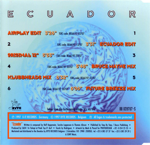 € 2.50 Media: Fair (F)Hoes: Very Good Plus (VG+)Sash! – Ecuador (CD, Maxi)