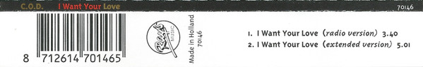 € 3.00 Media: Good Plus (G+)C.O.D. (2) – I Want Your Love (CD, Single)
