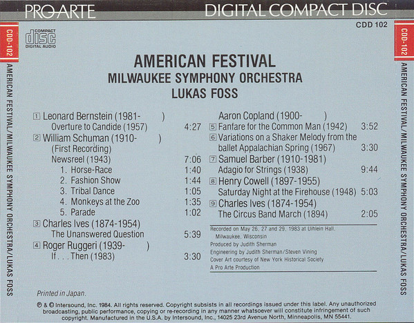 € 6.00 Media: Very Good (VG)Lukas Foss • Milwaukee Symphony Orchestra – American Festival (CD, Album)