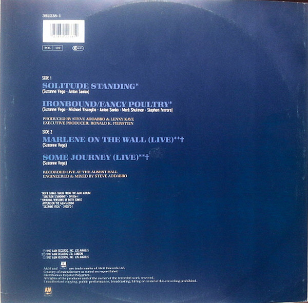 € 6.50 Media: Very Good Plus (VG+)Hoes: Very Good Plus (VG+)Suzanne Vega – Solitude Standing (12″)