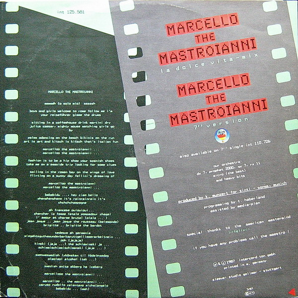 € 7.50 Media: Very Good Plus (VG+)Hoes: Very Good Plus (VG+)Silicon Dream – Marcello The Mastroianni (Metropolitan-Mix) (12″, Maxi)