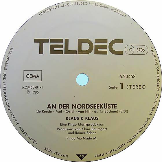 € 7.50 Media: Near Mint (NM or M-)Hoes: Very Good Plus (VG+)Klaus & Klaus – An Der Nordseeküste (12″, Maxi)