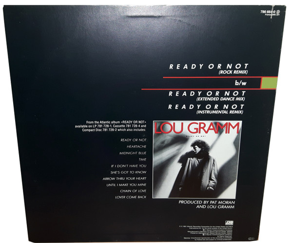 € 8.00 Media: Near Mint (NM or M-)Hoes: Very Good Plus (VG+)Lou Gramm – Ready Or Not (Rock Remix) (12″, Single)